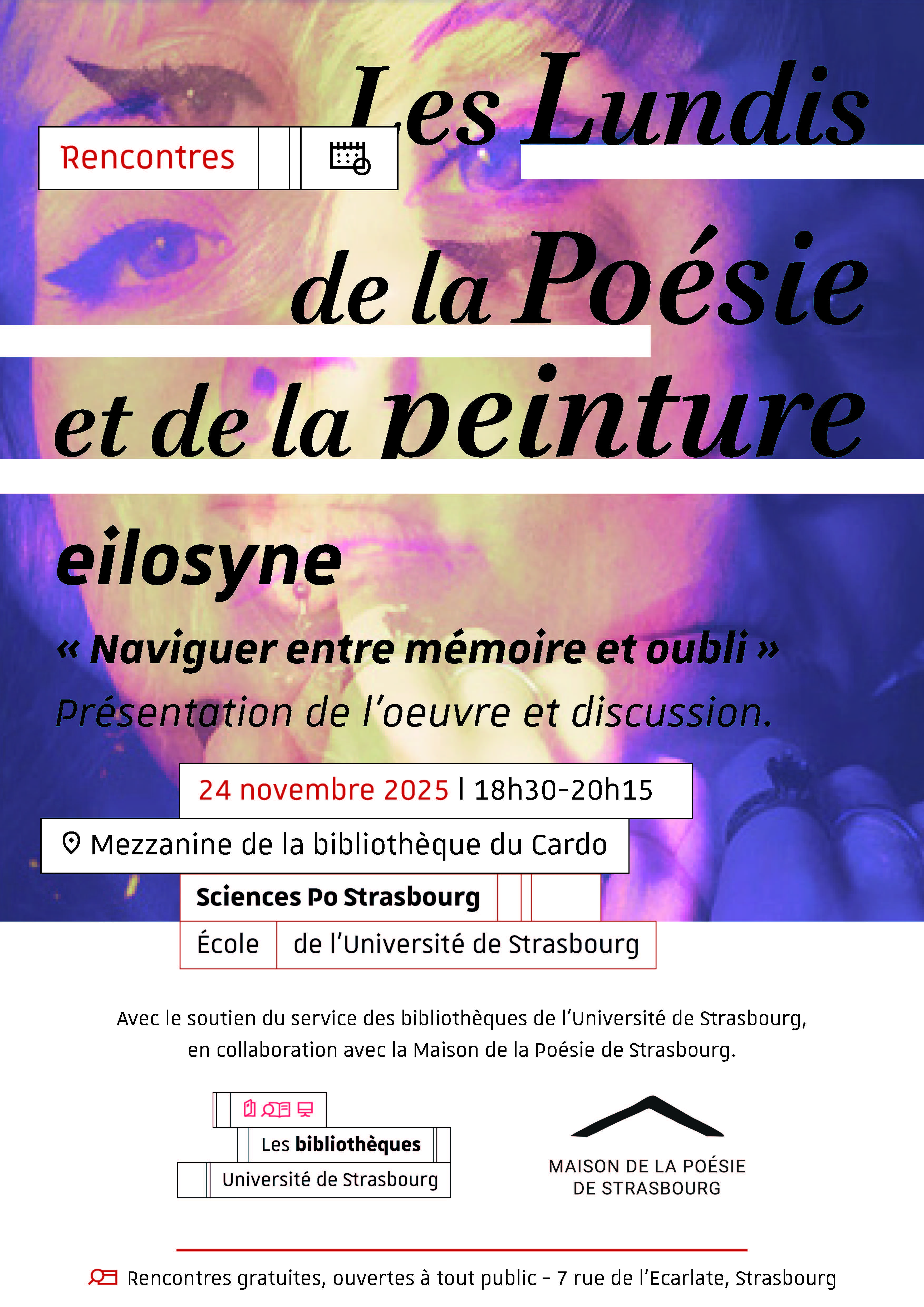 Cycle organisé avec le soutien du service des bibliothèques de l'Université de Strasbourg et en collaboration avec la Maison de la Poésie de Strasbourg.