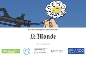 Animée par Farid ABDELOUAHAB et Thomas VONDERSCHER (Association Rhénane pour la Démocratisation de la Géopolitique). Avec Benjamin QUENELLE (journaliste, Le Monde), Pierre LEVY (Ambassadeur de France), Clémentine FAUCONNIER (maîtresse de conférences en science politique, UHA). Dessin de presse en direct (Yannick LEFRANCOIS - Piet - Laurent SALLES) - Amphi D