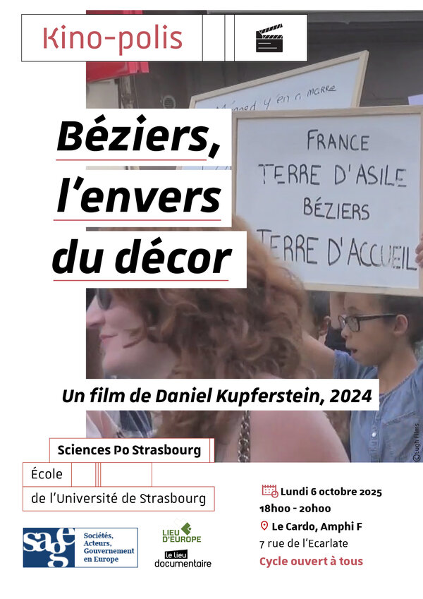 Sciences Po Strasbourg et le laboratoire SAGE (CNRS UMR 7363) poursuivent leur cycle de projections débats "Kino-polis," intitulé Filmer les enjeux et rapports de force en politique.