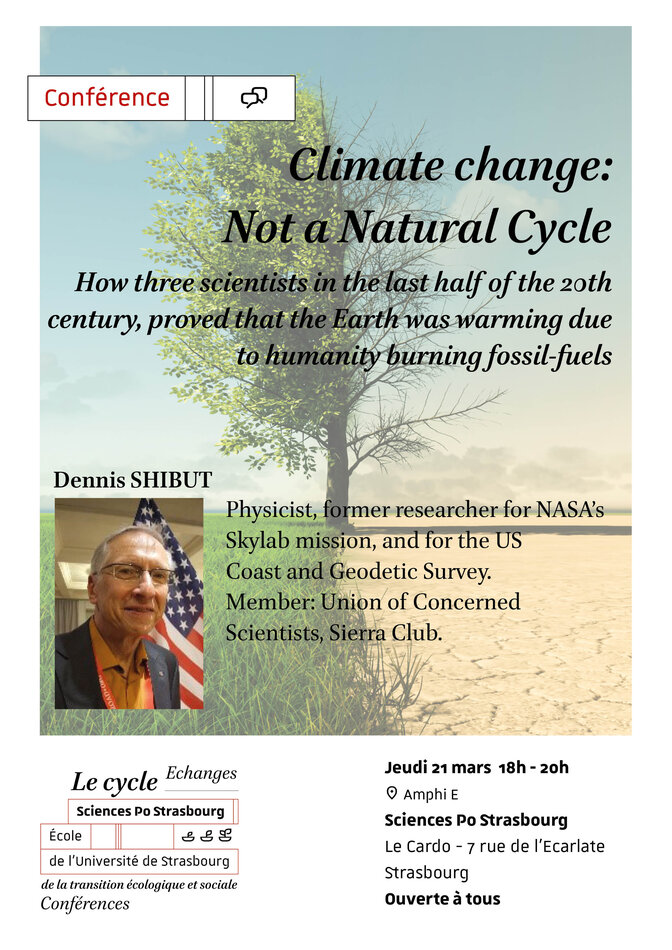 [Conférence] Pour cette nouvelle conférence du cycle de la transition écologique et sociale, Dennis Shibut, physicien, ancien chercheur pour la mission Skylab de la NASA, et pour l'US Coast and Geodetic Survey mettra en lumière les avancées scientifiques cruciales réalisées au cours de la seconde moitié du vingtième siècle. Ces découvertes ont bouleversé notre compréhension du climat terrestre, révélant que l'accélération du dérèglement climatique est essentiellement attribuable aux activités anthropiques.