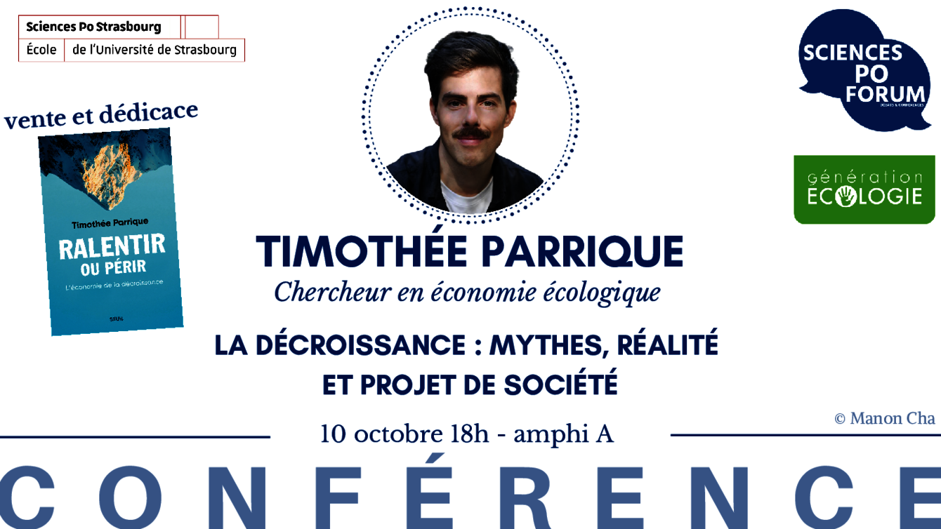 La décroissance : Mythes, réalité et projet de société. Une conférence organisée par Sciences Po Forum, en présence de TIimothée Parrique, chercheur en économie écologique.