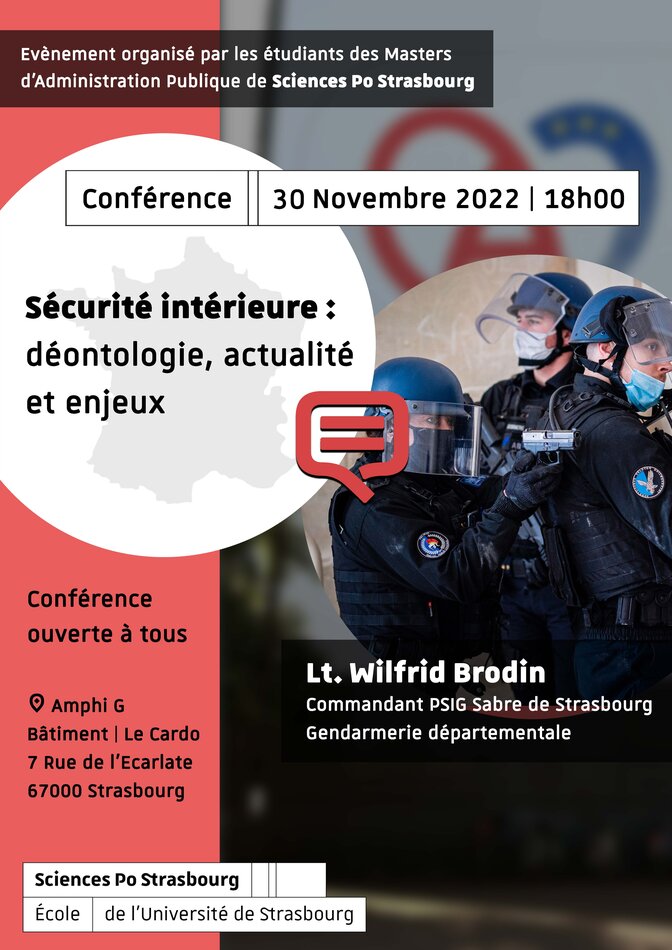 - Amphi G - sur le thème : "Sécurité intérieure : déontologie, actualité et enjeux".