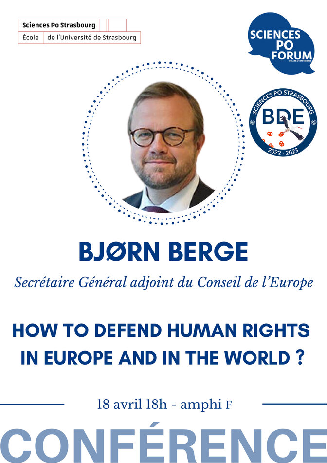 Sciences Po Strasbourg et les associations du BDE et de Sciences Po Forum ont le privilège de recevoir au Cardo M. le Secrétaire Général adjoint au Conseil de l’Europe afin d’échanger autour la defense des droits humains (en anglais).