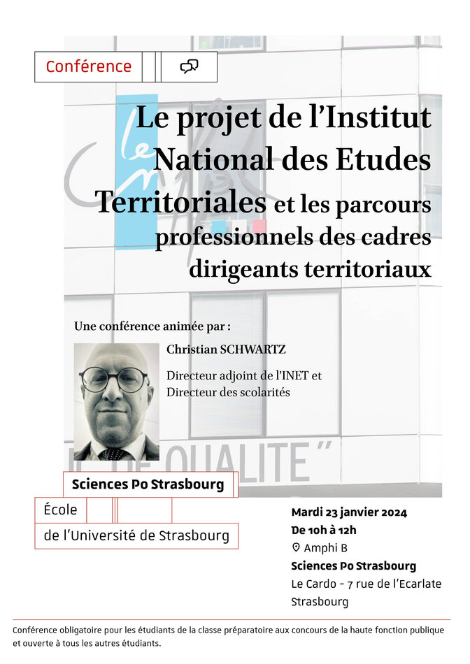 [Conférence] "Le projet de l'Institut National des Etudes Territoriales et les parcours professionnels des cadres territoriaux" en présence de Christian SCHWARTZ, directeur adjoint de l'INET et Directeur des scolarités.