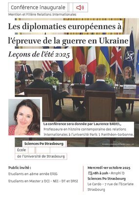 Laurence Badel, professeure en histoire contemporaine des relations internationales à l'université Paris 1 Panthéon -Sorbonne viendra à la rencontre des étudiants de Sciences Po Strasbourg et donnera une conférence sur les diplomaties européennes.