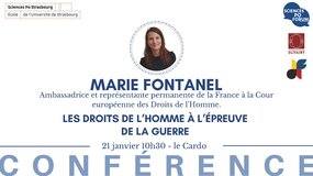 Sciences Po Forum, avec la Conférence Olivaint, et avec le soutien du Fonds citoyen franco-allemand, vous invitent à une conférence intitulée « Les droits de l'Homme à l'épreuve de la guerre », avec Madame Marie Fontanel.