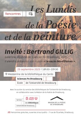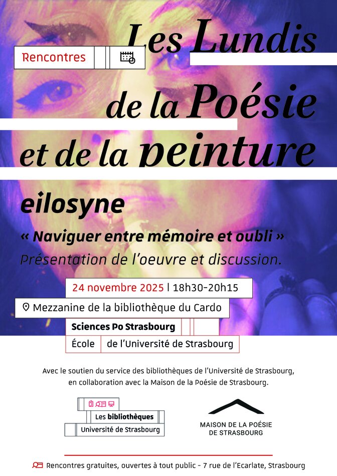 Cycle organisé avec le soutien du service des bibliothèques de l'Université de Strasbourg et en collaboration avec la Maison de la Poésie de Strasbourg.