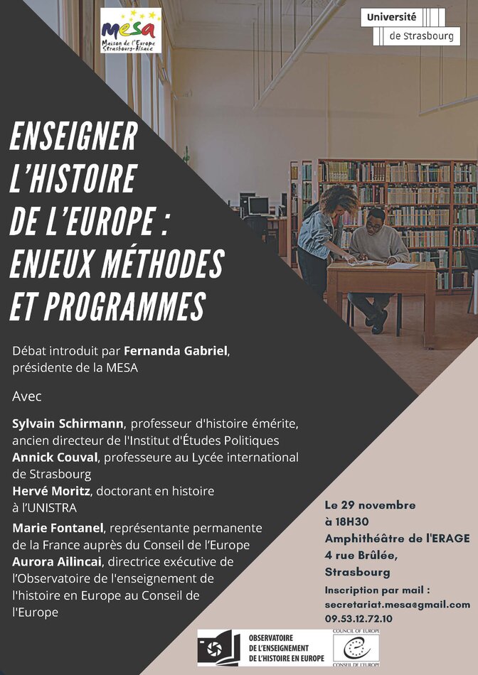 "Enseigner l'histoire de l'Europe : enjeux, méthodes et programmes" : une table ronde introduite par Fernanda Gabriel, présidente de la MESA, avec :