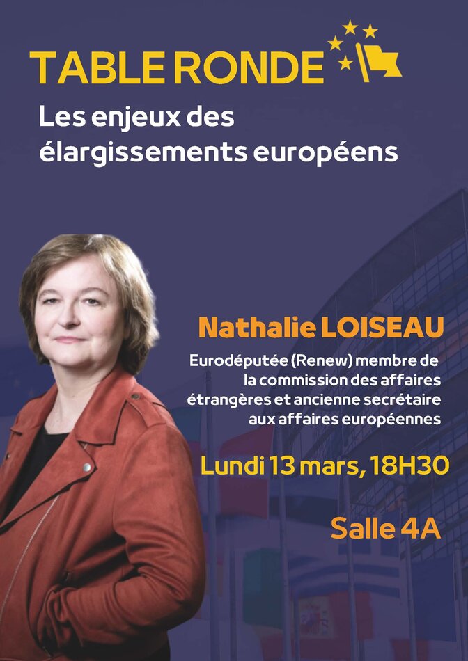 L'association Voix d'Europe vous propose une table ronde sur les enjeux des élargissements européens avec Nathalie Loiseau, Eurodéputée (Renew) membre de la commission des affaires étrangères et ancienne secrétaire aux affaires européennes.