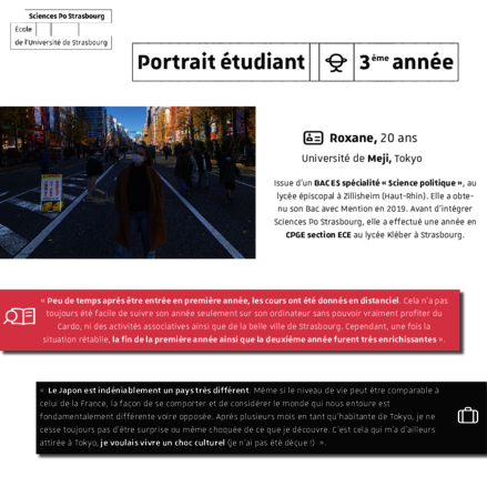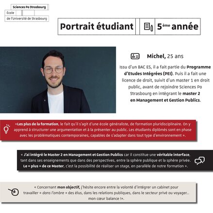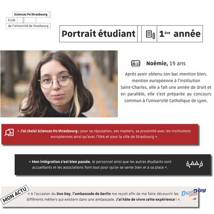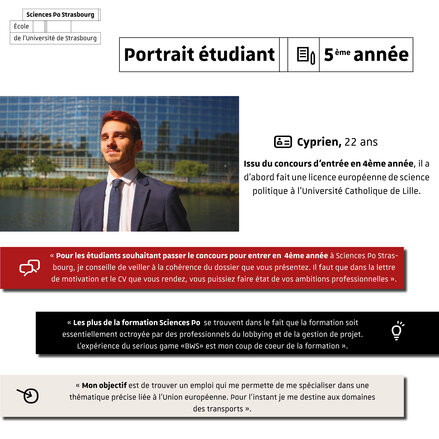 Over the course of the weeks, learn more about them: their background before Sciences Po Strasbourg, their state of mind on the university benches, their objectives for the future.