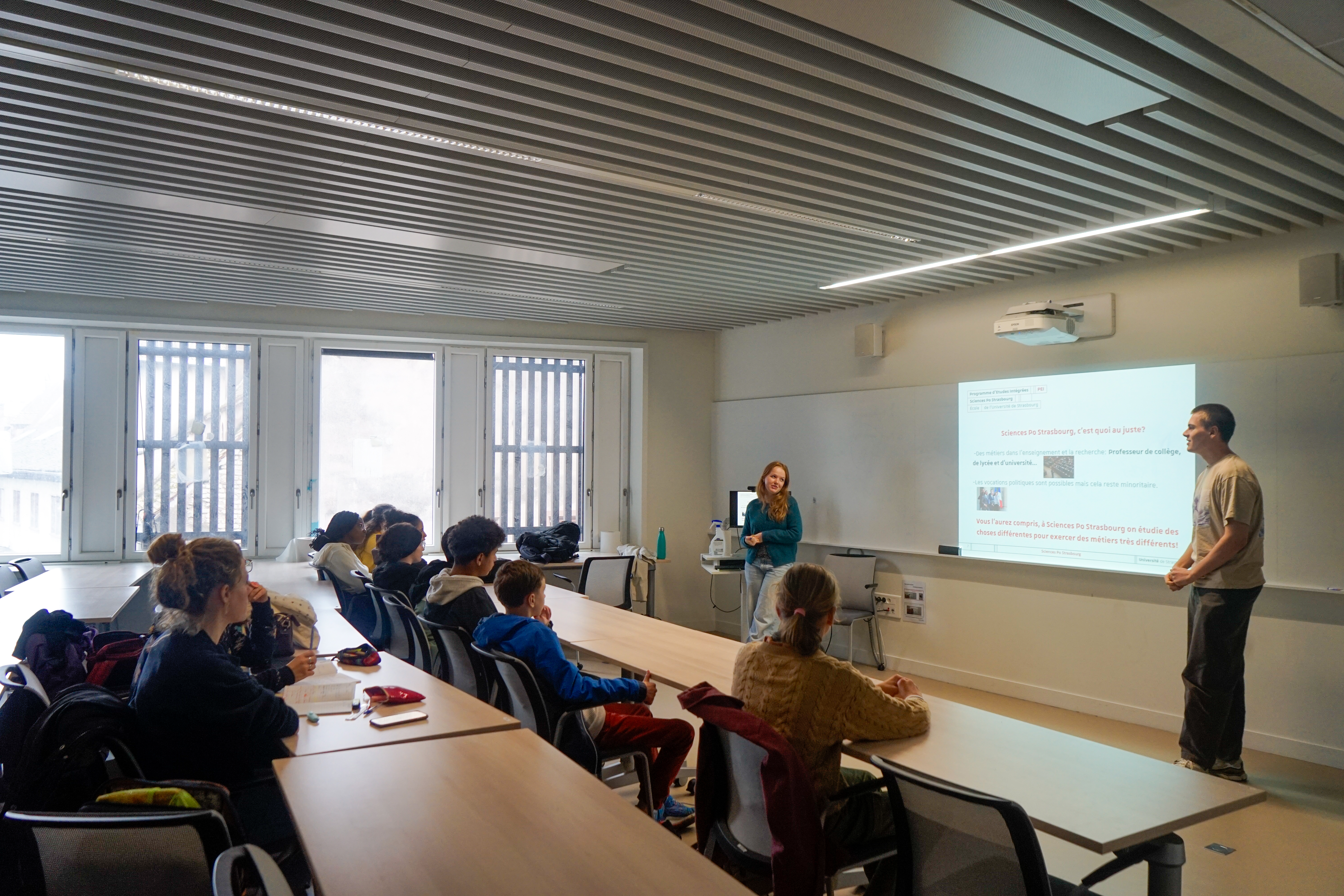 Les 52 élèves de troisième issus de 6 collèges ont également rencontrer leurs tuteurs : au total, ce sont 12 étudiants de Sciences Po Strasbourg, en 2ème et 4ème année, qui accompagneront les collégiens tout au long de cette année scolaire.