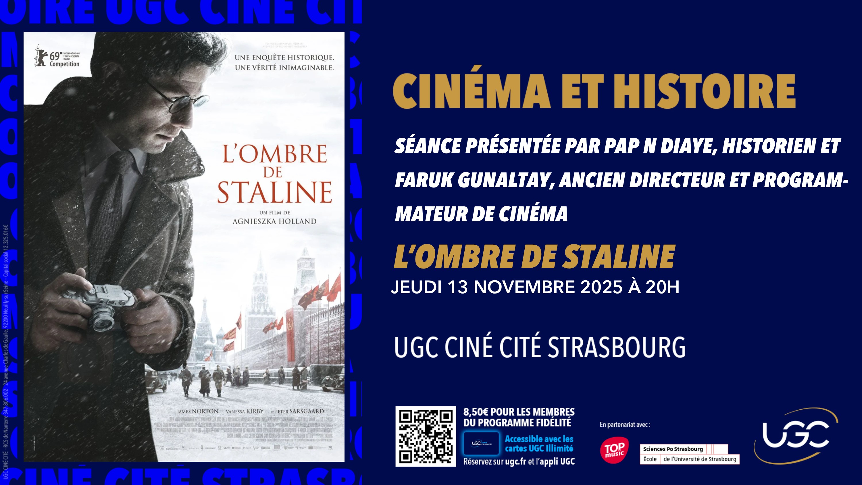 Lancé en septembre 2025 par l’UGC Ciné Cité Strasbourg , votre nouveau rendez-vous mensuel : Cinéma et HistoireChaque deuxième jeudi du mois à 20h, un film suivi d’un débat sera proposé.