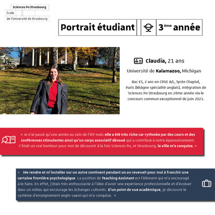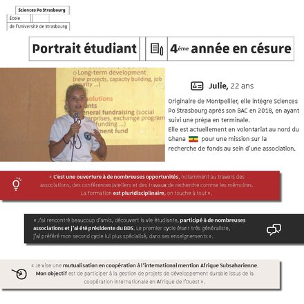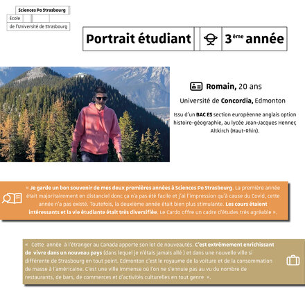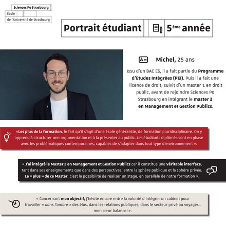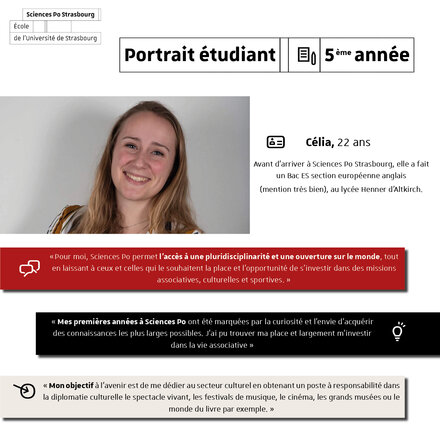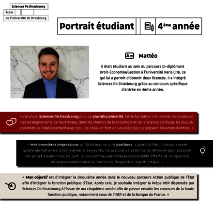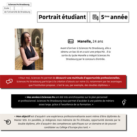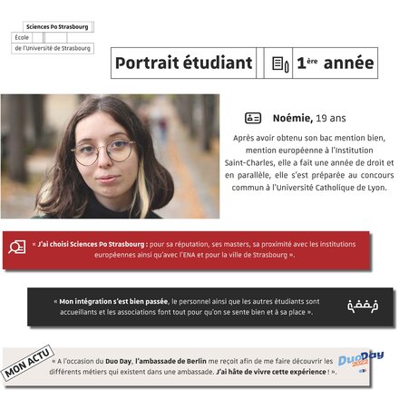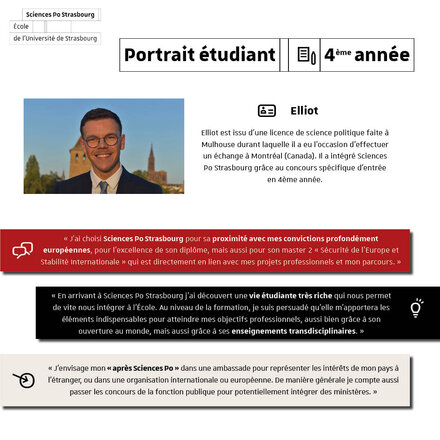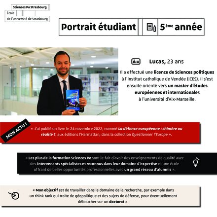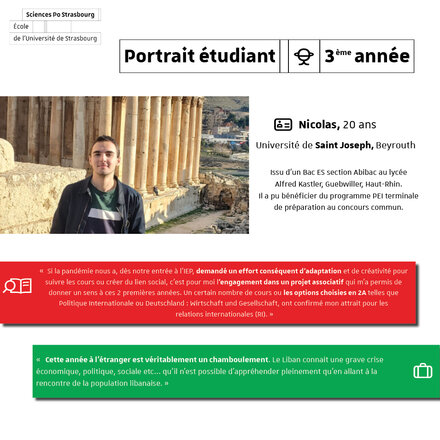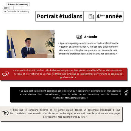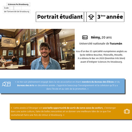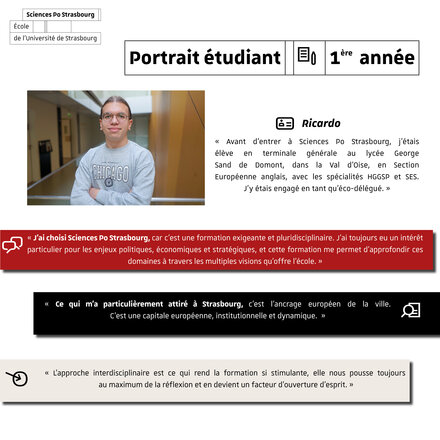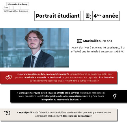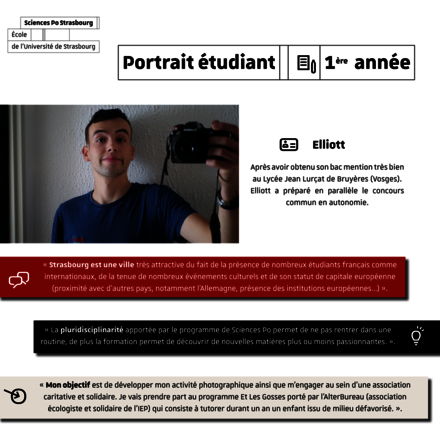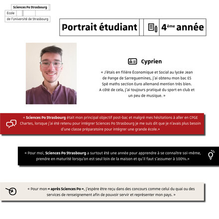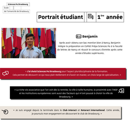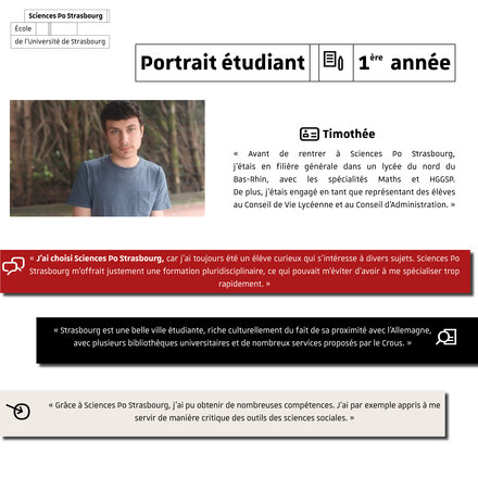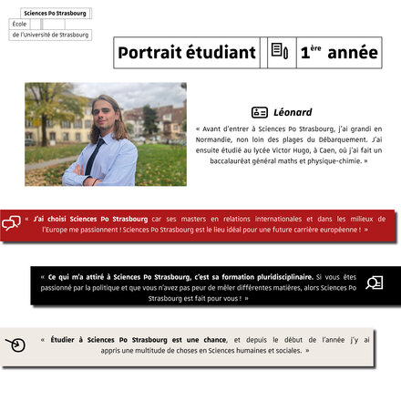 Au fil des semaines, apprenez-en plus sur eux : leur parcours avant Sciences Po Strasbourg, leur état d'esprit sur les bancs de l'Université, leurs objectifs pour la suite.