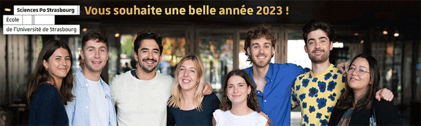 La direction et les équipes de Sciences Po Strasbourg vous souhaitent à toutes et à tous une très belle année 2023 et espèrent qu’elle sera placée sous le signe de la réussite pour tous vos projets, personnels et professionnels.